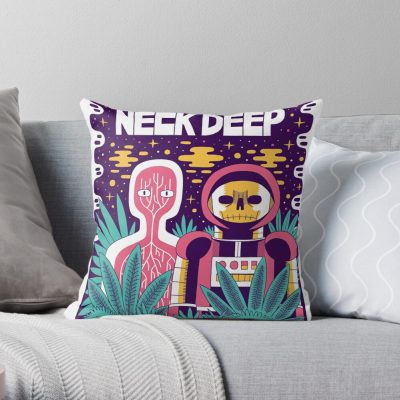 Neck Deep Astronout Skull Throw Pillow